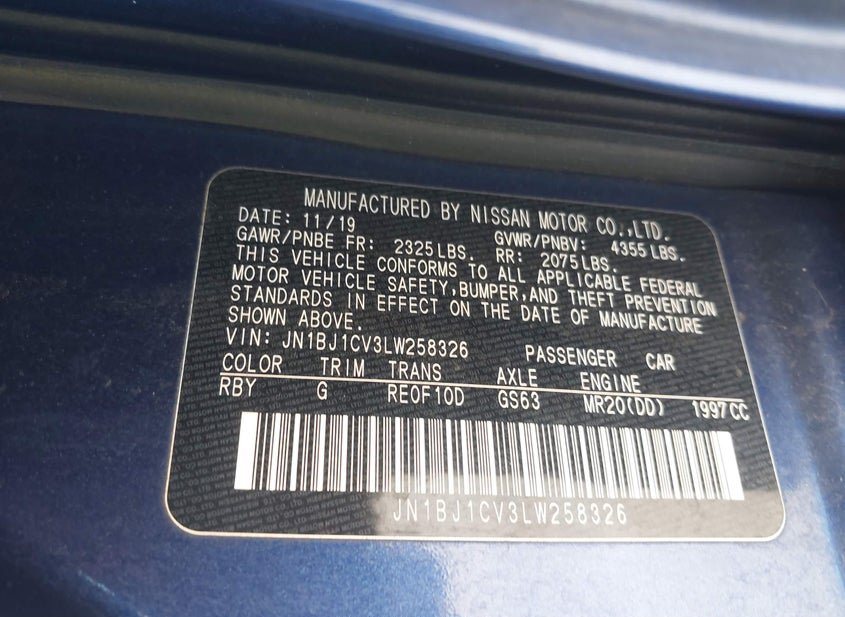 - VIN: JN1BJ1CV3LW258326