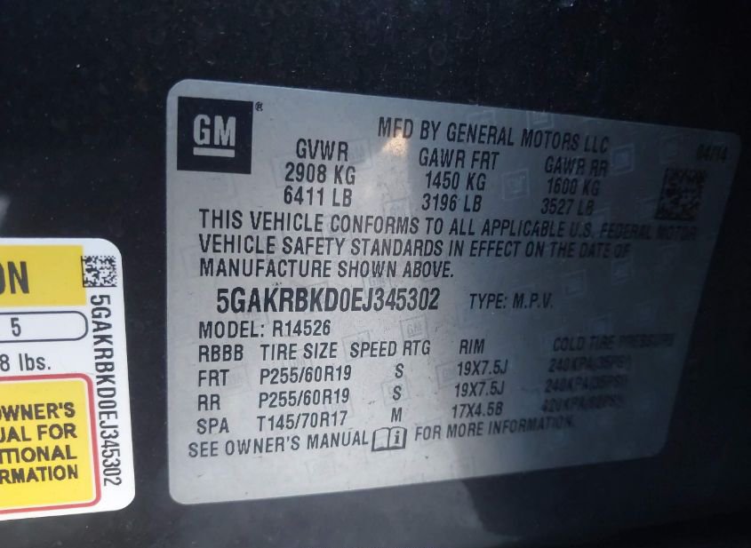 - VIN: 5GAKRBKD0EJ345302