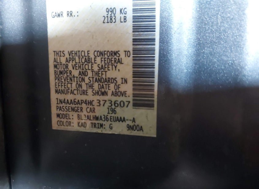 - VIN: 1N4AA6AP4HC373607