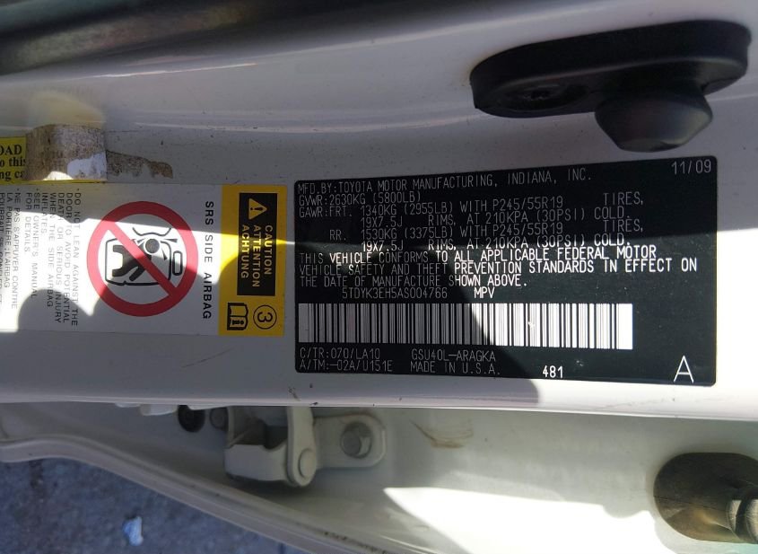 - VIN: 5TDYK3EH5AS004766