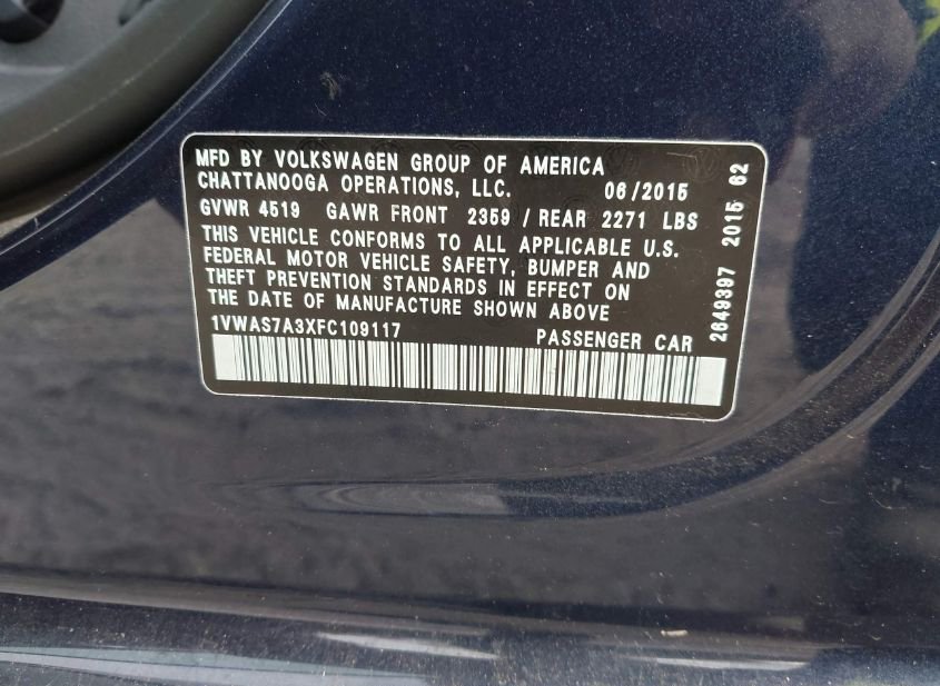 - VIN: 1VWAS7A3XFC109117