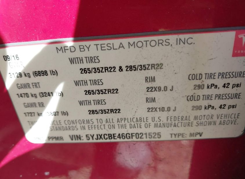 - Название лота: 2016 TESLA MODEL X 75D/P100D/P90D