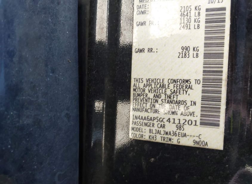 - VIN: 1N4AA6AP5GC411201