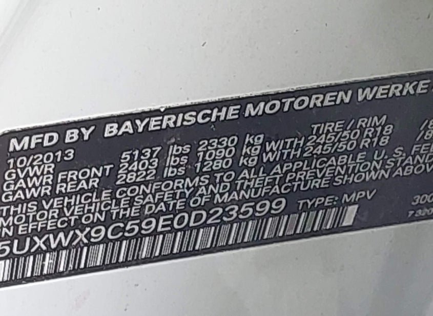 - VIN: 5UXWX9C59E0D23599