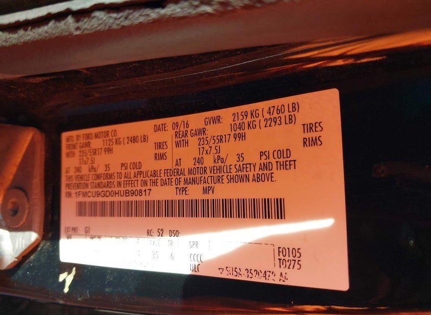 - VIN: 1FMCU9GD0HUB90817