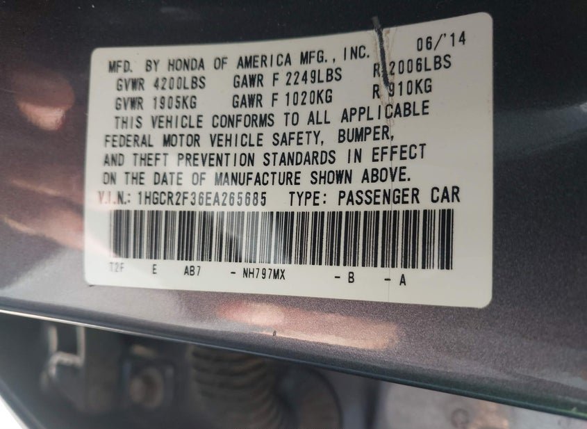 - VIN: 1HGCR2F36EA265685