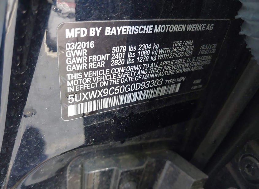 - VIN: 5UXWX9C50G0D93303