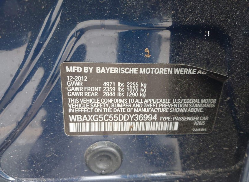- VIN: WBAXG5C55DDY36994