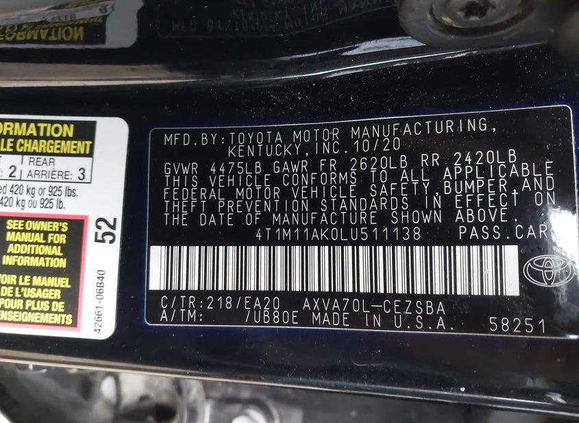- VIN: 4T1M11AK0LU511138