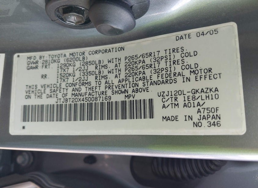 - VIN: JTJBT20X450087169
