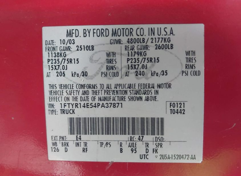 - VIN: 1FTYR14E54PA37871