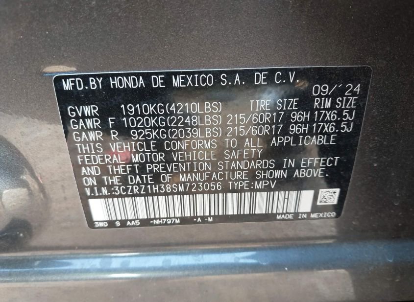 - Название лота: 2025 HONDA HR-V 2WD LX