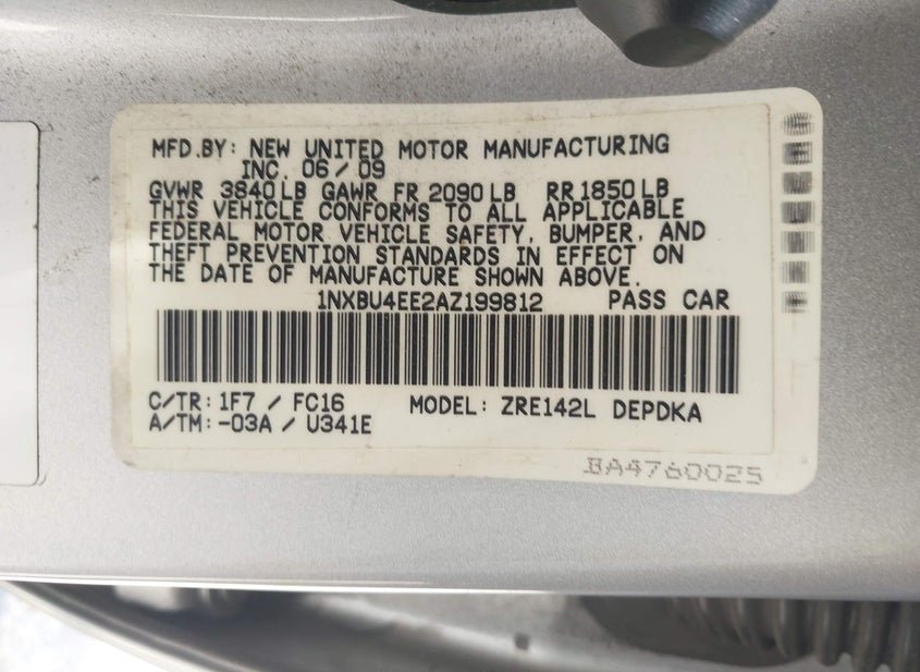 - VIN: 1NXBU4EE2AZ199812