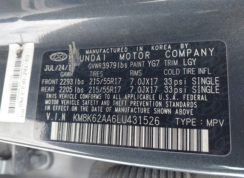 - VIN: KM8K62AA6LU431526