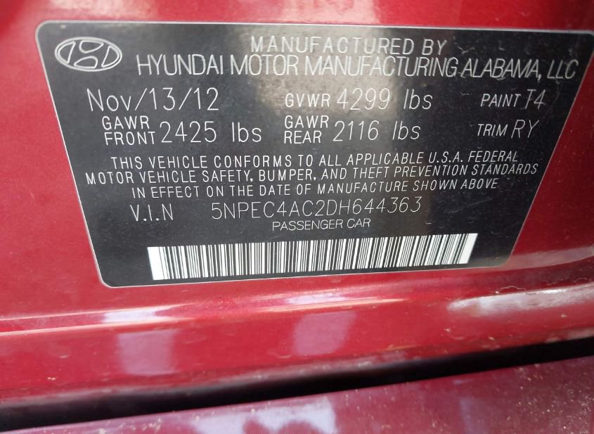 - VIN: 5NPEC4AC2DH644363