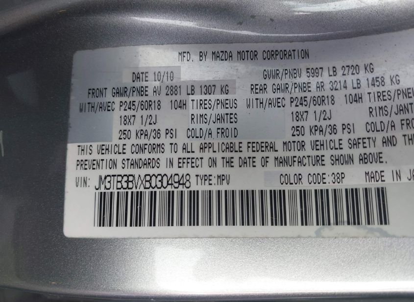 - VIN: JM3TB3BVXB0304948
