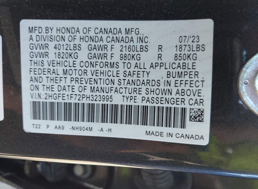 - VIN: 2HGFE1F72PH323995