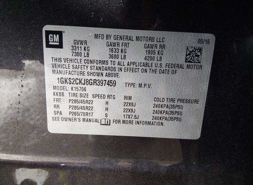- VIN: 1GKS2CKJ8GR397459