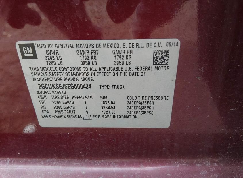 - VIN: 3GCUKSEJ6EG500434