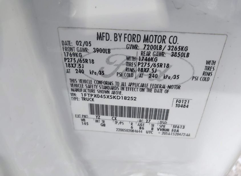 - VIN: 1FTPX045X5KD18252