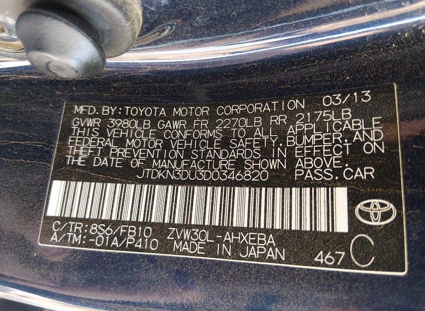 - VIN: JTDKN3DU3D0346820