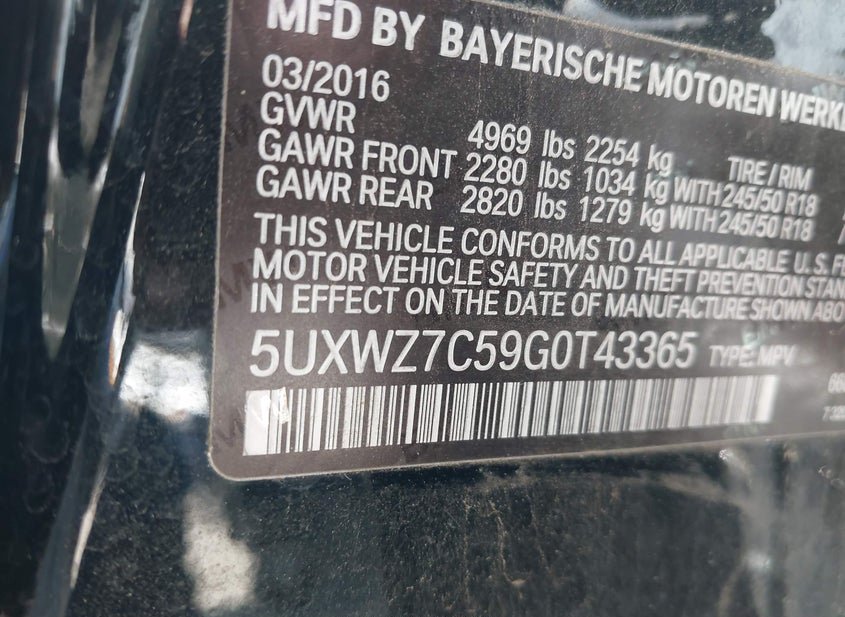 - VIN: 5UXWZ7C59G0T43365