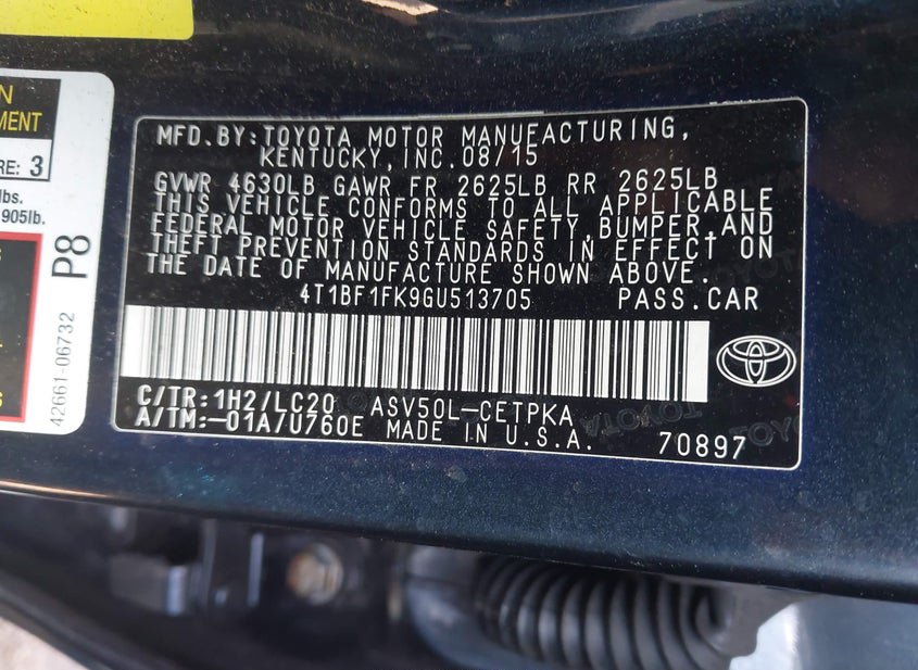 - VIN: 4T1BF1FK9GU513705