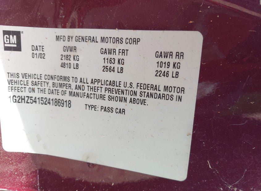 - VIN: 1G2HZ541524186918