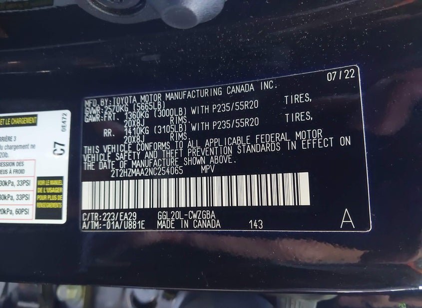 - VIN: 2T2HZMAA2NC254065