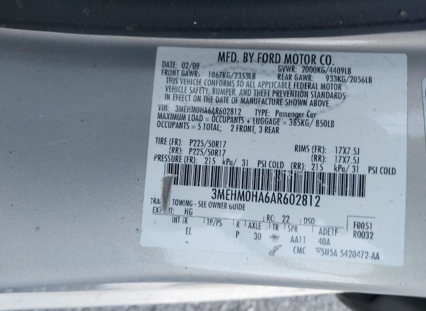 2010 MERCURY MILAN