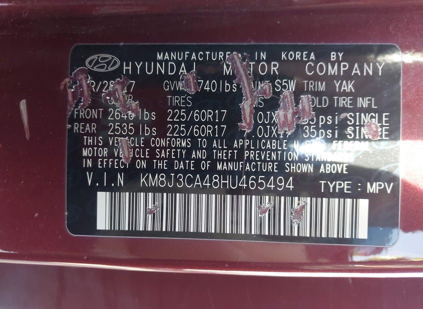 - VIN: KM8J3CA48HU465494