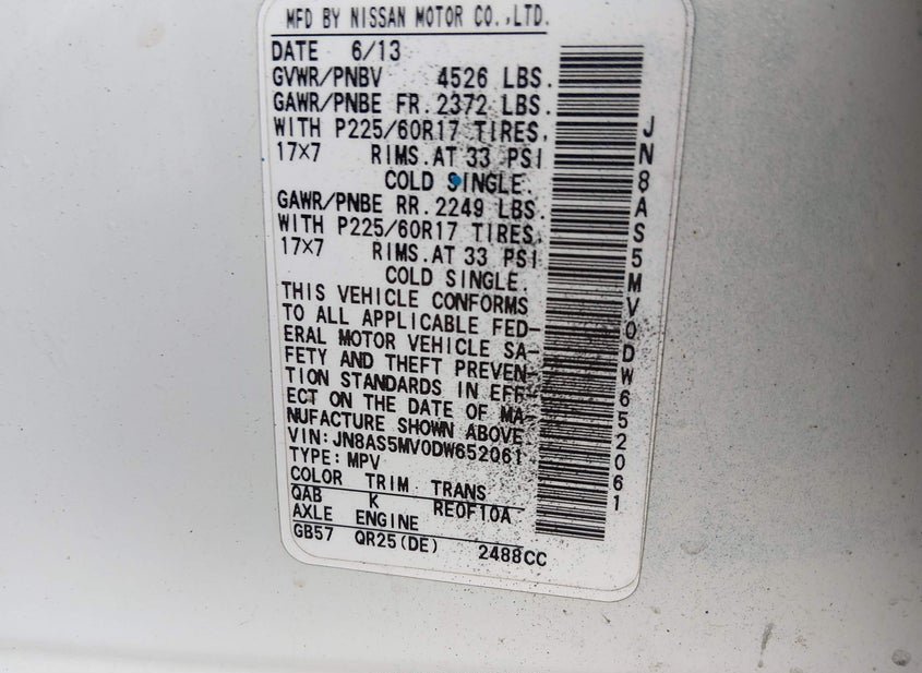 - VIN: JN8AS5MV0DW652061