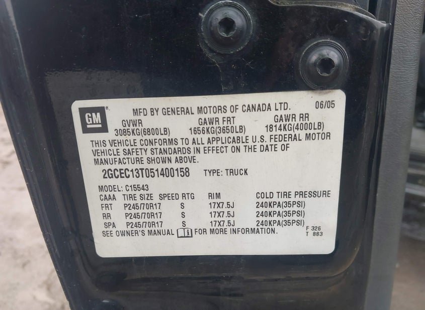 - VIN: 2GCEC13T051400158