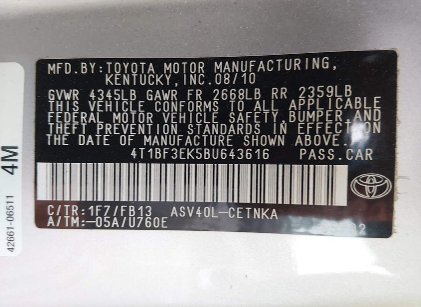 - VIN: 4T1BF3EK5BU643616