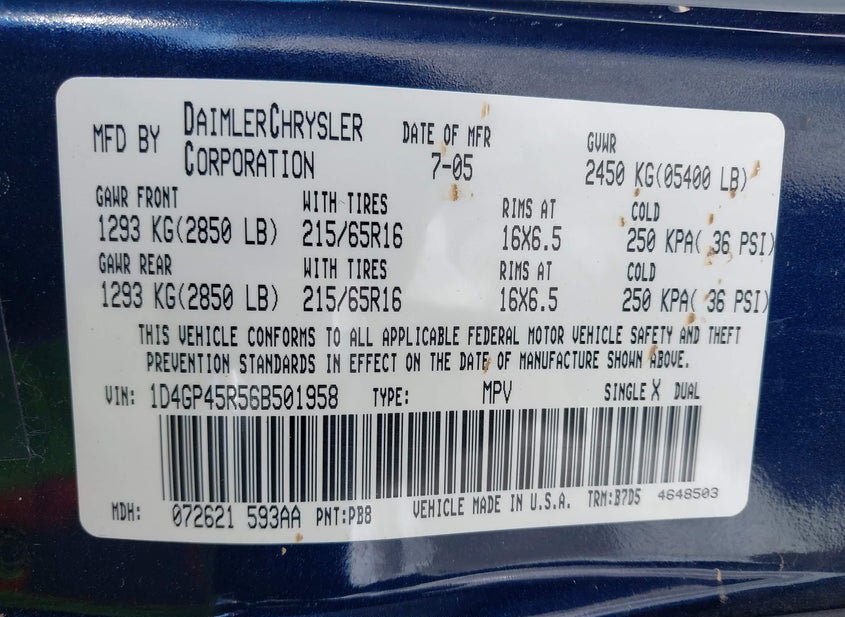 - VIN: 1D4GP45R56B501958