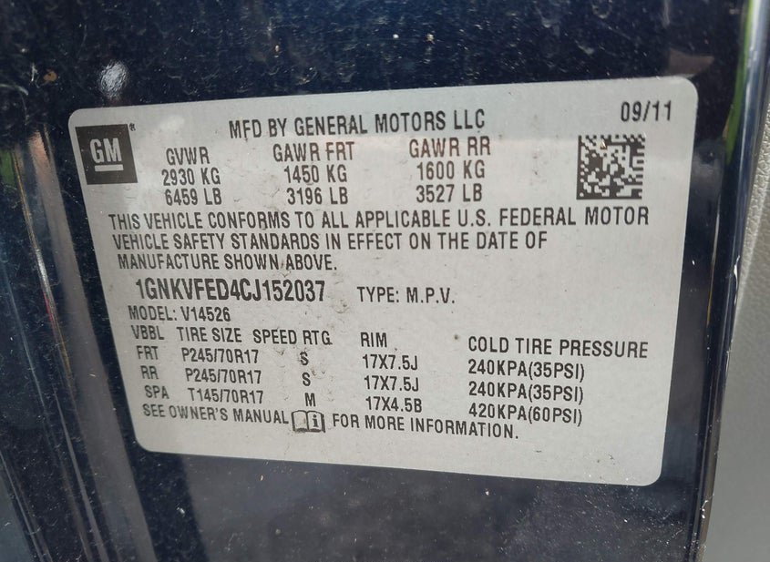 - VIN: 1GNKVFED4CJ152037