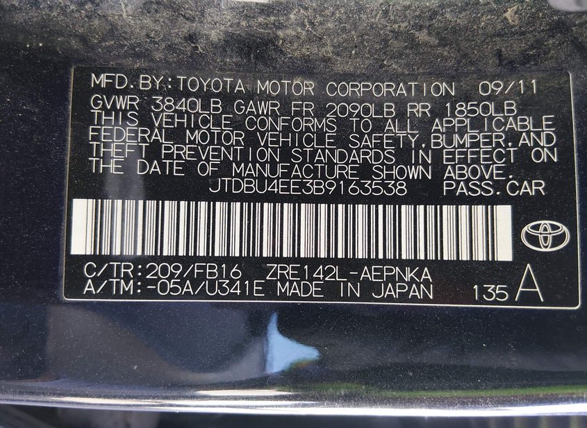 - VIN: JTDBU4EE3B9163538