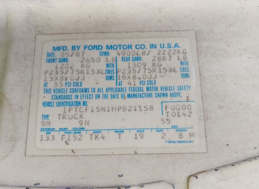 - Название лота: 1987 FORD F150
