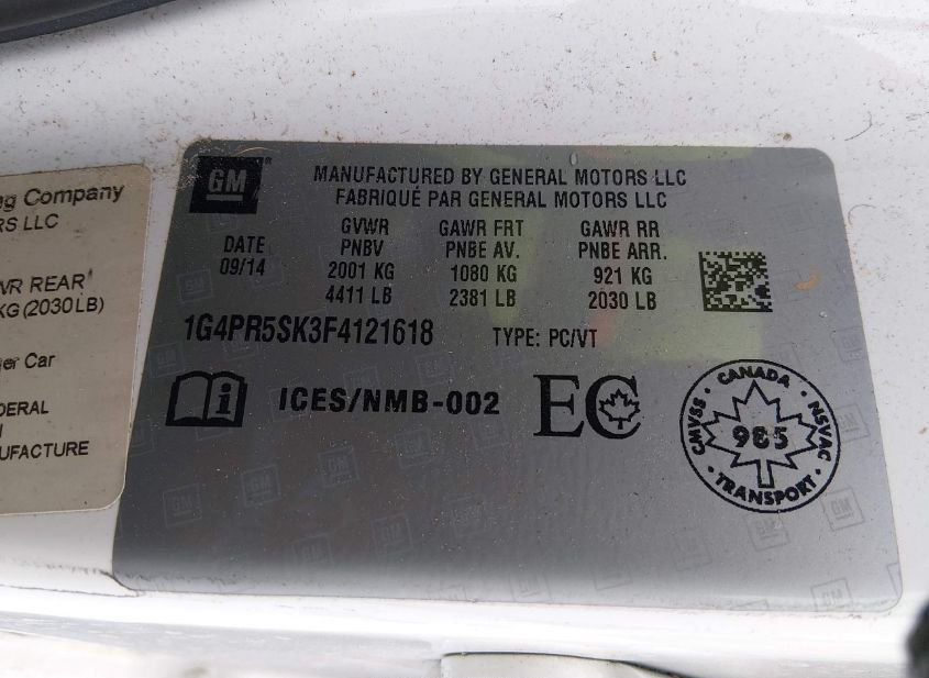 - VIN: 1G4PR5SK3F4121618