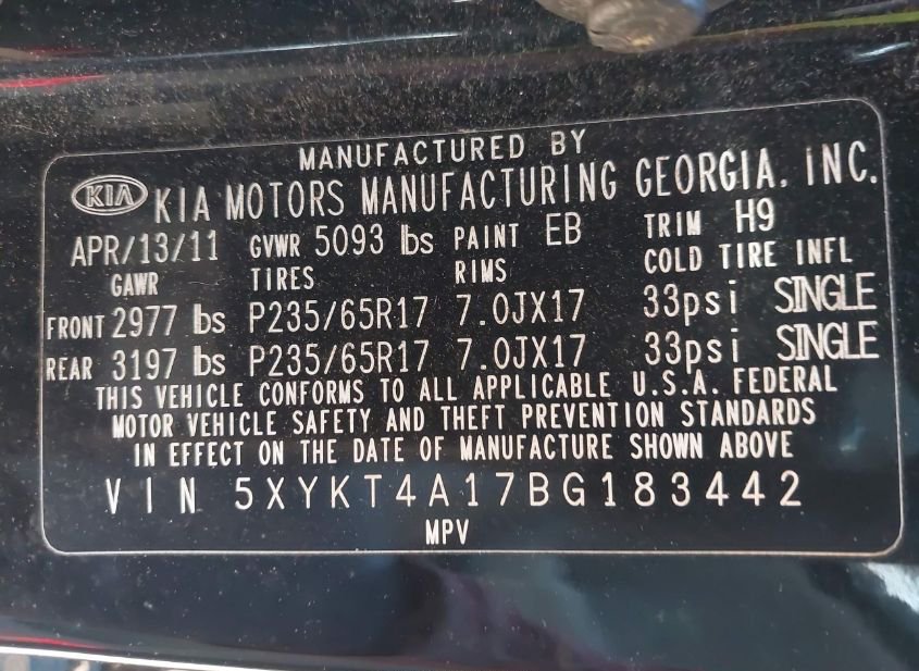 - Название лота: 2011 KIA SORENTO LX