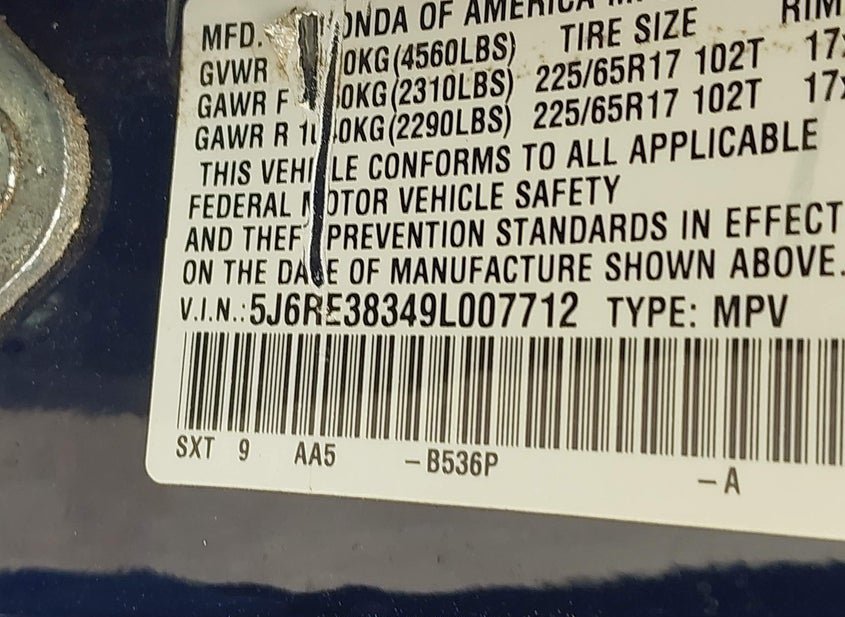 - VIN: 5J6RE38349L007712