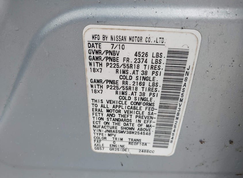 - VIN: JN8AS5MV3BW254548