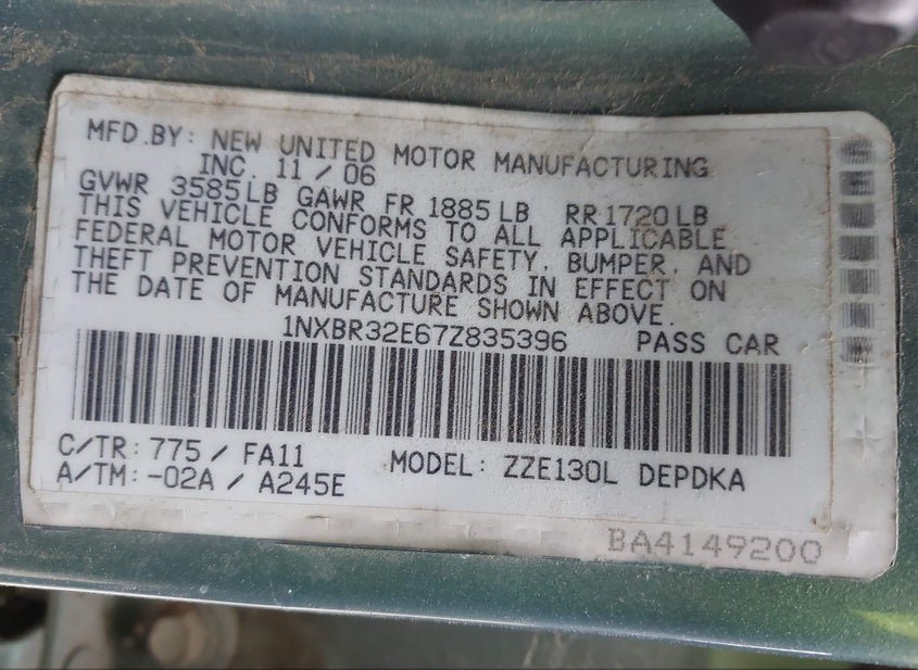 - VIN: 1NXBR32E67Z835396