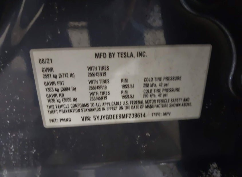 - VIN: 5YJYGDEE9MF239614