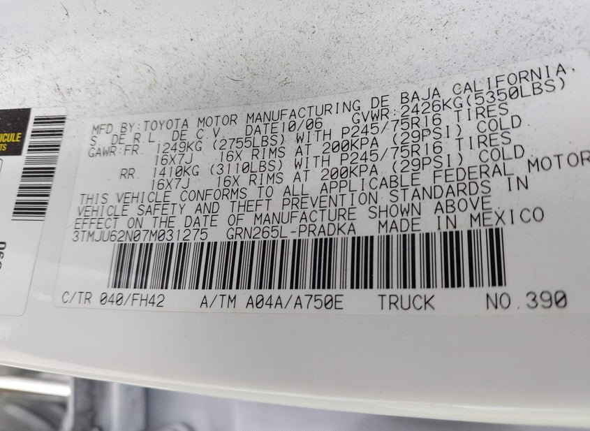 - VIN: 3TMJU62N07M031275