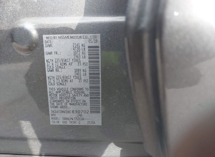 - Название лота: 2019 NISSAN ROGUE S