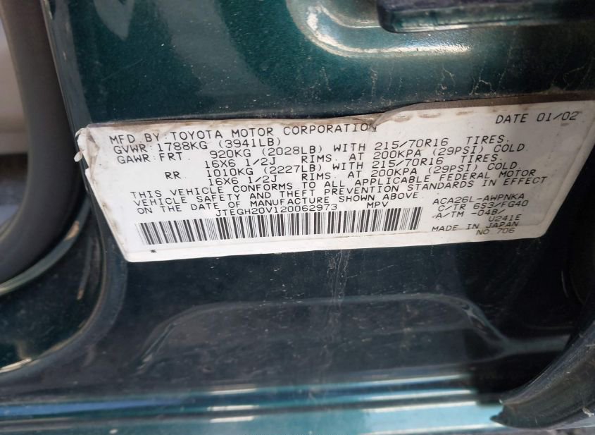 - VIN: JTEGH20V120062973