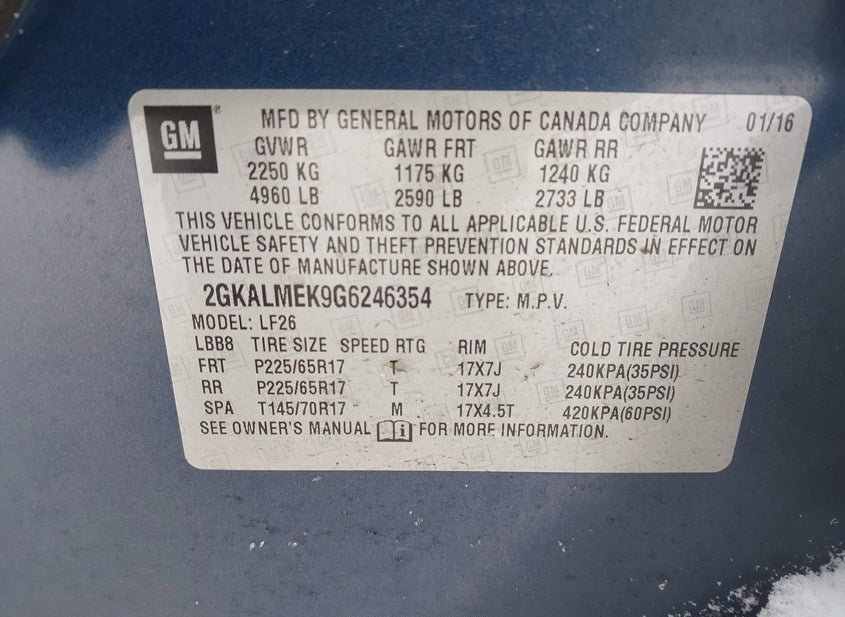 - VIN: 2GKALMEK9G6246354