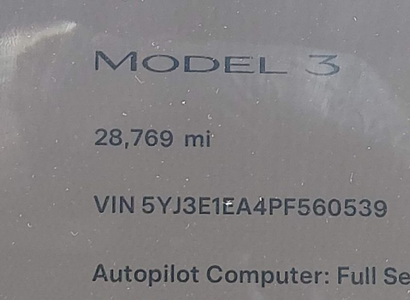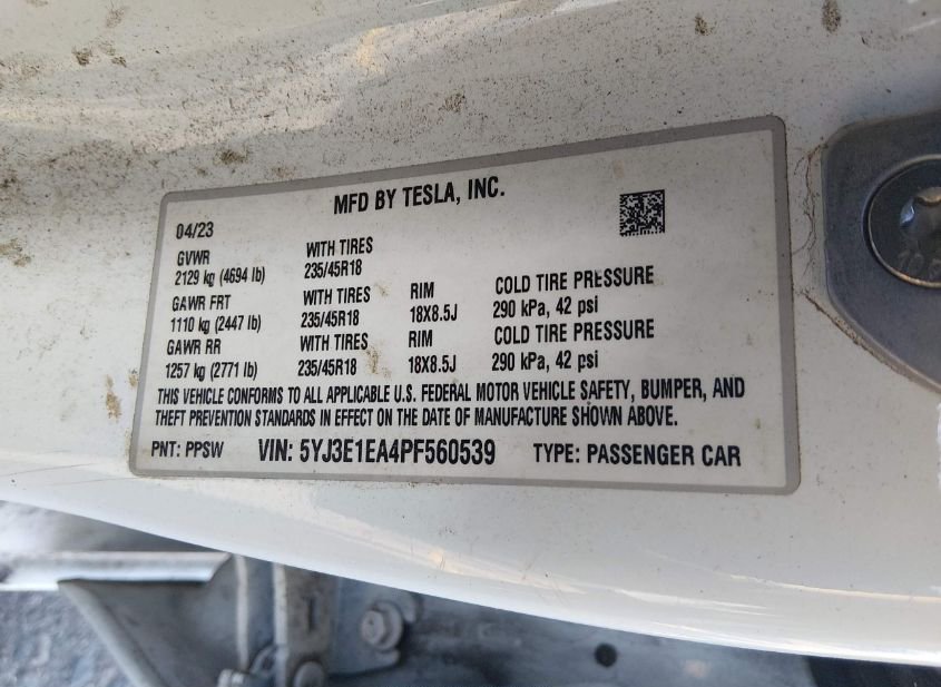 - VIN: 5YJ3E1EA4PF560539