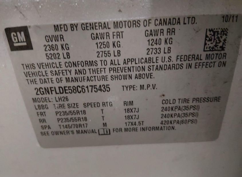 - VIN: 2GNFLDE58C6175435